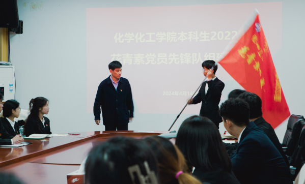 4月14日,化学化工学院本科生2022级花青素党员先锋队组建仪式在工科A座121室举行。化学化工学院党委副书记徐光辉、团委书记魏孟吉和花青素党员先锋队全体成员参与本次组建仪式。