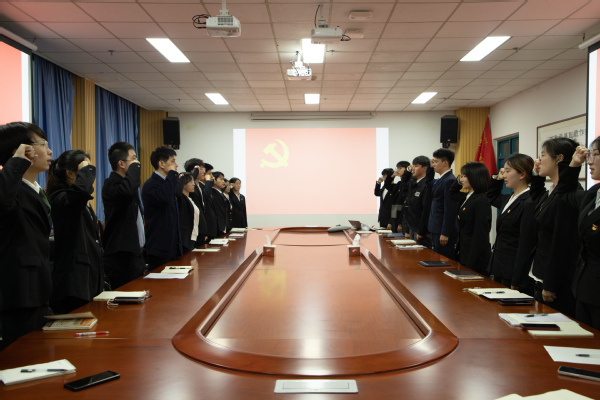 仪式开始,魏孟吉简述先锋队成立的初衷,先锋队二十二名党员同志皆为年级中首批党员,成立先锋队旨在帮助队员们集中学习,相互帮助,共同进步。同时也要求队员们无论是在学习还是生活中,都能够发挥先锋模范作用,以实际行动去践行党的宗旨,为学院及师生做好服务。随后,魏孟吉宣读先锋队通过前期的考察与综合考核,最终确立李煜龙为花青素党员先锋队队长的决定。之后由徐光辉将花青素党员先锋队队旗授予先锋队,告知他们要在党旗的引领下做一名合格的中共党员。与会全体党员起立,面向党旗庄严宣誓,重温入党誓词,回忆加入党组织的初心。接着,徐光辉由党旗的构成追思党的发展历程,从“人民当家作主”开始讲起,逐步深入至当前的严峻国际形势与行业状况,以所学专业为例,提醒先锋队队员要学会分析社会局势,增强自身的使命感与责任感,时刻为报效祖国实现自我价值做准备。通过一个个活生生的例子,提醒先锋队队员们要时刻坚定理想信念,追求不计小我,只求大我的精神高度。最后,先锋队队员进行功能团支部的团支部书记、组织委员与宣传委员的竞选,通过报名与现场投票,确定了李煜龙、张美琪、刘秩伯为团支委成员,并将队员分为了理论学习,实践活动,文体发展及纪律考核四个组织小组,共同承担起功能性团支部的日常工作。
