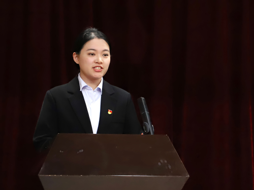 参加岗前锻炼学生代表陈欣儒发言 元晨晨摄
