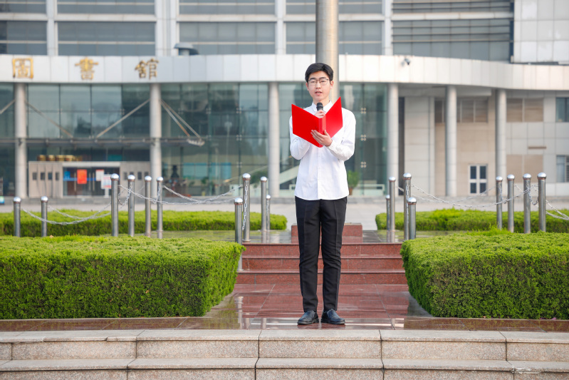 全体师生面向国旗肃立致敬,齐唱国歌,现场气氛庄严而又热烈。本科2021级学生付宇作“能源报国,砥砺深耕”主题演讲,他结合自己的学习成长经历、总体国家安全观、能源安全、石大精神等方面号召广大团员青年勇做时代先锋,为祖国的能源事业贡献青春力量。