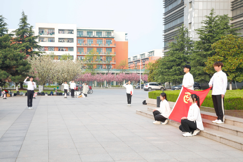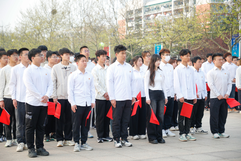 在学院学生会主席团成员张铭扬带领下,全体学生重温入团誓词,立志传承“五四”薪火,铿锵有力的誓言回荡在广场上空。最后,全体团员青年齐唱中国共产主义青年团团歌《光荣啊,中国共青团》,用嘹亮的歌声传达坚定理想,唱出青春热血。