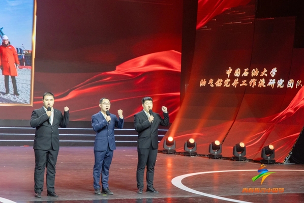 4月26日,第二节青岛高校大学生艺术节文艺汇演在青岛大剧院歌剧厅成功举办,我院油气钻完井工作液研究团队师生代表白英睿、黄贤斌、杨景斌讲述参与深地塔科1井钻井工作的奋斗故事,以及舞蹈《能源强国畅想曲》深受好评。
