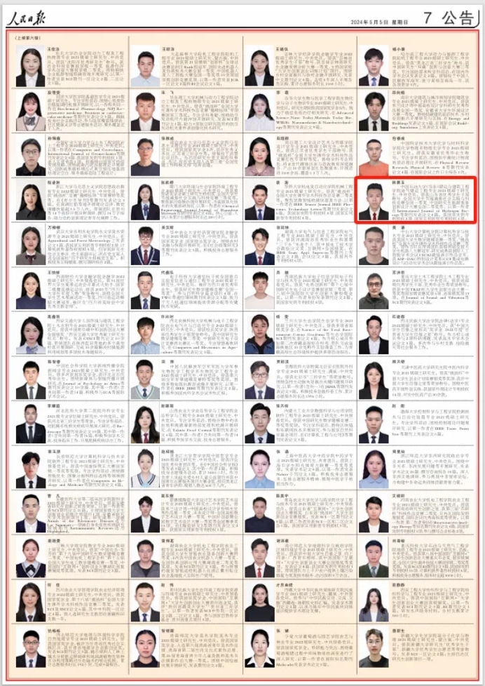 5月5日,《人民日报》第6-7版整版刊登2022—2023学年度《研究生国家奖学金获奖学生代表名录》,储运与建筑工程学院2021级油气储运工程专业硕士研究生韩晨玉名列其中,这是我院学生首次入选该名录。