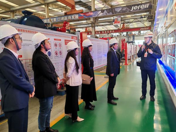 调研团一行参观了杰瑞集团展厅、集团工会展厅、捷瑞数字大厅,深入了解杰瑞集团的发展历程、产业布局、工业互联网云平台功能等情况,并走进生产一线考察杰瑞集团车间运营激励制度。