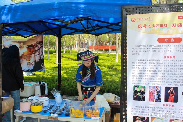 在以文化人上下功夫,营造浓厚氛围。在荟萃广场成功举办的大型文化艺术展演分为四大主题区域:“国风中华——礼俗文化互动体验区”、舌尖中华——饮食文化互动分享区”、“乐舞中华——艺术文化互动分享区”以及“锦绣中华——服饰文化互动体验区”,既有各民族的歌舞表演、乐器弹奏以及京剧等经典艺术形式,也有充满了浓郁的民族特色和地方风味的各民族美食、服饰及传统乐器等展出,还有“讲解员”们为前来体验的师生讲解每一道美食、每一种服饰背后所蕴藏的文化内涵,运动体验区还设置背篓绣球、押加等民族体育活动,现场热闹非凡,为广大师生呈现了各民族艺术文化的独特魅力,不仅为各民族师生带来了一场震撼人心的中华民族风情视听盛宴,更在心灵深处激发了师生对大家庭血浓于水、骨肉相连的深刻情感。本次文化艺术展演的主持人蒋学攀说:“通过此次活动,我了解和认识了不同民族的同学,也了解到各民族服装饮食文化,这样的活动对各民族学生交往交流交融有很大的意义。”
