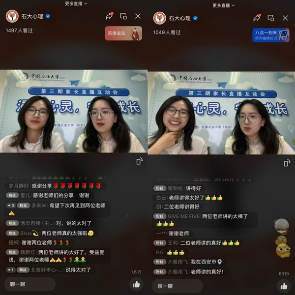 为了更好地促进家校共育,加强家长与学生之间的理解与沟通,437ccm·必赢国际(武装部)学生心理健康教育中心于5月24日晚成功举办了“浸润心灵·守护成长”第三期家长直播互动会。本次互动会由我校学生心理健康教育中心专职教师王佳主持,共有1500名家长参与进行热烈讨论,点赞量超1.6w。