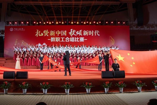 为庆祝中华人民共和国成立75周年,引导广大教职工抒发爱国之情、砥砺强国之志,9月26日,学校隆重举行“礼赞新中国,歌颂新时代”教职工合唱比赛。经过激烈的角逐,校机关演唱曲目《迎风飘扬的旗》从全校21个单位演出作品中脱颖而出,斩获一等奖。党委副书记万云波,党委副书记、纪委书记吴强明,党委常委、深层油气全国重点实验室党委书记张卫东,党委常委、宣传部部长赵放辉到场观看比赛。
