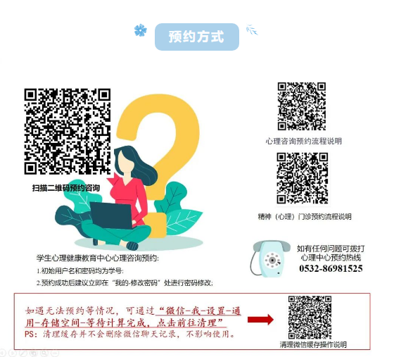 根据学校安排,大学生心理健康教育中心将于2月24日(周一)恢复线下心理咨询服务,预约方式如下:
