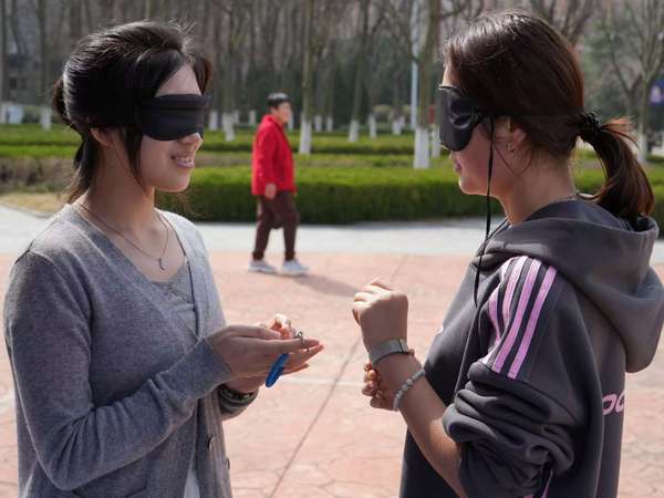 “触感秘境——盲盒里的春日密码”则是默契与沟通的考验。两人组队,一人描述盲盒中的触感,另一人猜测物品,考验了搭档之间的默契与沟通能力。在你来我往的互动中,同学们不仅增进了友谊,还共同感受到春日的奇妙与惊喜。
