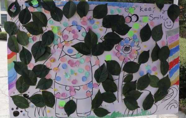 活动接近尾声,全体参与者将收集的花瓣粘贴于在画板《春日暖暖》上,一幅绚丽多彩的春日画卷就此诞生,寓意“心向暖阳,万物生长”。来自文法学院的王可欣兴奋地说:“今天的活动让我在春日里感受到了温暖与力量。愿每一位同学都能像春天的花朵一样,勇敢绽放,善爱自我!”