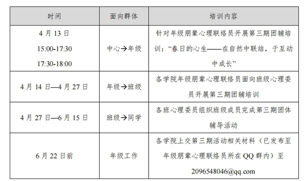 关于举办第三期团体辅导培训及团辅活动安排的通知