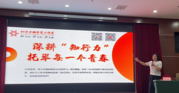 活动期间,刘笑深度参与会议研讨交流,与来自全国的同行共探AI赋能高校“党建工作样板党支部”与“辅导员名师工作室”的建设路径。随后,刘笑应邀作《青春筑梦向“知行” 成长赋能‘一站式’——辅导员工作室数智化生态建设的探索与实践》工作室建设经验分享,重点围绕基于我校依托‘一站式’开展工作室建设的经验,通过设计知识问答智能体、数字陪伴智能体、能力诊断智能体、情境训练智能体、追踪反馈智能体等5类核心智能体,数智赋能解决学生在学业的知与职业的行服务的点与成长的面,育人的碎片化与发展的系统性等问题,为学生成长成才提供一站式服务。
