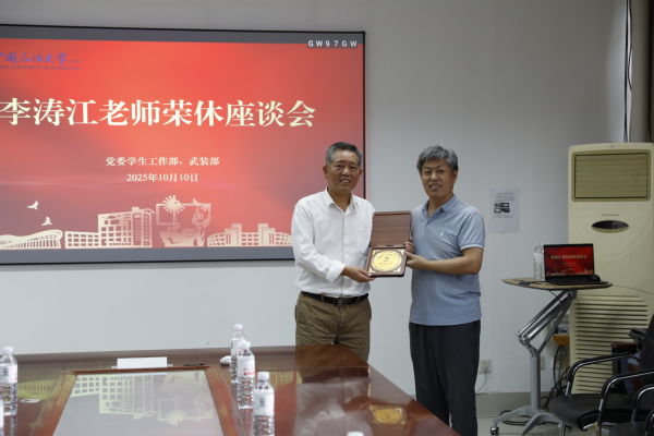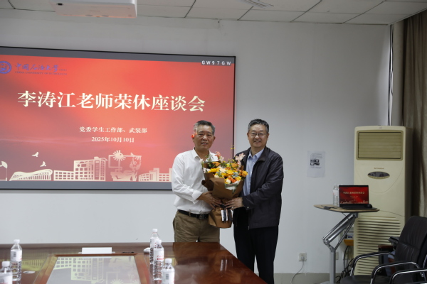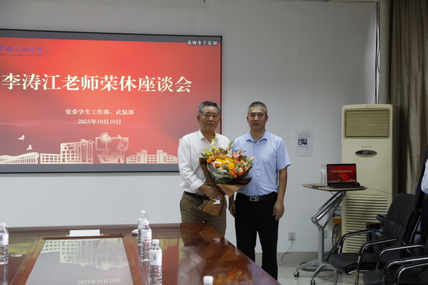 2025年10月10日上午,437ccm·必赢国际、武装部为李涛江老师举行荣休座谈会。会议邀请了李涛江老师所带学生代表张永宁、郭文及老同事代表张万春、盛阿赛参加。