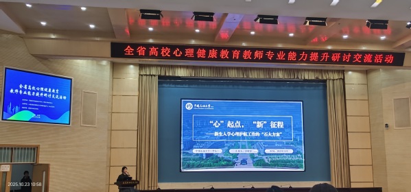 10月23日至25日,山东省高校心理健康教育教师专业能力提升交流活动在莱芜职业技术学院顺利召开。本次活动由山东省教育厅思想政治工作处指导,山东高校思想政治工作创新发展中心(山东大学)主办,莱芜职业技术学院承办,各高校学生工作部门负责人、心理中心专兼职教师、辅导员骨干等共计120余人参会。我校受邀作心理健康教育工作经验分享,学生心理健康教育中心专职教师辛晓雯代表学校作了题为《“心”起点,“新”征程——新生入学心理护航工作的“石大方案”》的专题报告。