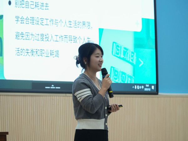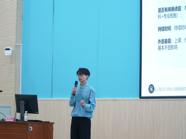 启动仪式后,专题培训环节有序开展。辛晓雯以《心理委员职责与定位》为主题,从“角色认知、职责边界、工作流程”三个维度展开讲解。她结合校园实际案例,明确心理委员“朋辈支持者、心理信息桥、活动组织者”的核心角色,厘清心理委员与专业心理教师的职责区分,分清必做、可做和不做的事,强调“保密、有限和沟通原则”的工作底线,确保工作规范有序开展。王志鹏聚焦《同伴心理状态关怀与支持技巧》进行专题授课。他围绕“心理困扰识别信号、恰当回应方式、心理问题上报边界和流程”三大核心内容,通过场景模拟、要点拆解等方式,向心理委员传授实用技能。他强调,关怀支持需注重“共情理解为先、专业边界为要”,既要用真诚态度接纳同伴情绪,也要准确识别超出能力范围的情况,及时对接辅导员和心理中心资源,确保支持的专业性与安全性。本次专题培训创新引入雨课堂智慧教学工具赋能教学,利用弹幕及作答功能搭建实时互动通道,打破传统单向授课模式,构建了“教-学-评”实时联动的高效教学氛围。