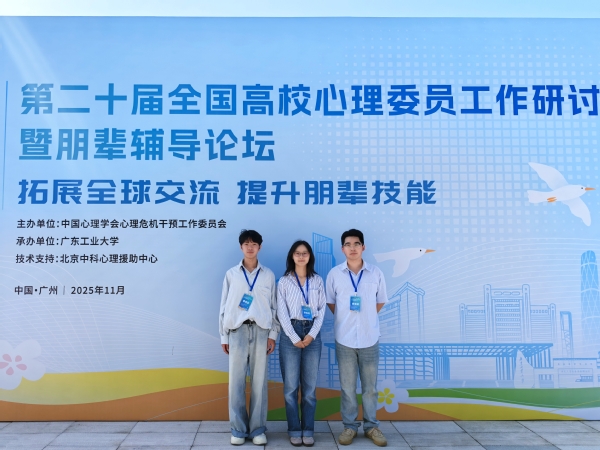 近日,由中国心理学会心理危机干预工作委员会主办的第二十届全国高校心理委员工作研讨会暨朋辈辅导论坛在广州工业大学圆满落幕。会议期间,我校文法学院法学2201班于帅同学、材料科学与工程学院材器2302班李秉罡同学凭借扎实的专业能力与卓越的工作成效,成功入选第八届全国百名心理委员风采展示,充分彰显我校心理委员队伍建设的显著成效。
